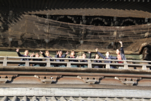 赤羽別院の山門に登りました。 2024年12月5日/カテゴリ: お知らせ /作成者: dsasuy4891PL●一色高校の西側にある「赤羽別院」の境内を3年生が清掃しました。 その際、お寺の御厚意にて山門に登らせていただきました。 ●昭和十三年建立の山門の上から見る景色は、まさに「絶景かな!絶景かな!」と3年生の生徒は大・大興奮でした。 ●赤羽別院さん、素敵な時間となりました。ありがとうございました。 https://isshiki-hs.jp/wp-content/uploads/2024/12/IMG_1661.jpg 3456 5184 dsasuy4891PL https://isshiki-hs.jp/wp-content/uploads/2018/08/logo-1.png dsasuy4891PL2024-12-05 14:41:452024-12-05 14:41:45赤羽別院の山門に登りました。