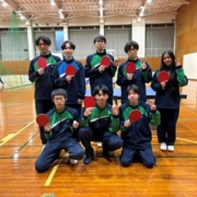 ・卓球部の魅力は、皆が楽しく、必死に部活に取り組むというところです。その結果、部員のやる気が出て、練習を集中して行うことができます。卓球は体格差・筋力差関係なく誰でも気軽に始められる競技なので、男女・学年・経験関係なく、楽しく練習しています。経験者は3回戦以上、初心者は1回戦以上大会で勝つことを目標にしています。