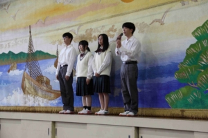 ●立会演説に先立ち、前期生徒会役員から前期生徒会活動に御協力していただいたことへの感謝の挨拶がありました。