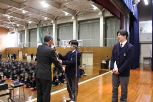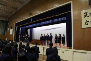 柔道部、バスケットボール部、放送部、生活デザイン科の表彰が行われ、色々な方面で頑張ったうれしい報告がありました。