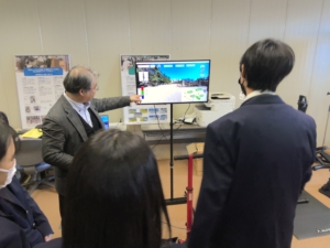 授業Bでは、総合情報学部の説明を受けた後、授業体験を行いました。講義後は「仮想書道システム」と「メタバース歩行支援システム」を学生の方のサポートを受けながら体験させていただきました。