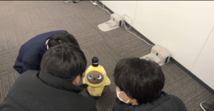 授業Aでは、「ふれあいロボット〈LOVOT〉と学ぶ先端のフィジカルAI技術」の授業体験を行いました。実際にLOVOTと触れ合いながら、その仕組みについて理解を深めました。今回は愛知産業大学にいるLOVOTのつくしちゃんとまろんちゃんが一緒に学んでくれました。