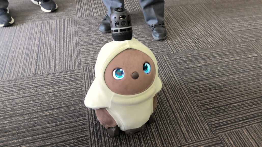 授業Aでは、「ふれあいロボット〈LOVOT〉と学ぶ先端のフィジカルAI技術」の授業体験を行いました。実際にLOVOTと触れ合いながら、その仕組みについて理解を深めました。今回は愛知産業大学にいるLOVOTのつくしちゃんとまろんちゃんが一緒に学んでくれました。