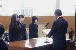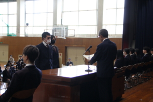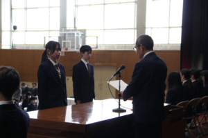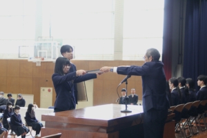 表彰状授与式を行いました。 2026年3月6日/カテゴリ: 学校・生徒会 行事レポート /作成者: dsasuy4891PL●令和8年2月27日(金)に令和7年度表彰状授与式を行いました。今年度も様々な分野で一高生の活躍が見られました。受賞された皆さん、卒業後も頑張ってください。 ●表彰状授与式後、生徒会による記念品贈呈式が行われました。在校生からは袱紗が送られました。卒業生の皆さん、おめでとうございます! https://isshiki-hs.jp/wp-content/uploads/2026/03/IMG_0097.jpg 3456 5184 dsasuy4891PL https://isshiki-hs.jp/wp-content/uploads/2018/08/logo-1.png dsasuy4891PL2026-03-06 15:29:442026-03-06 15:29:44表彰状授与式を行いました。