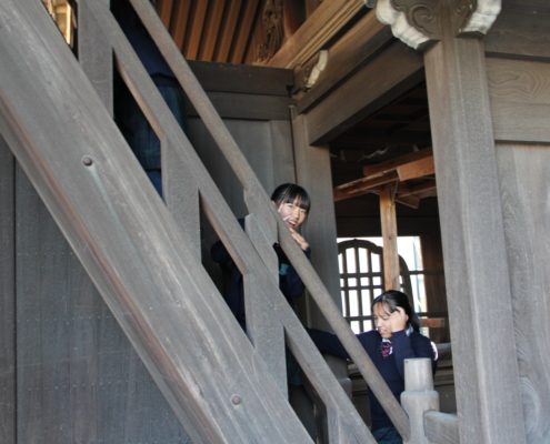 ●昭和十三年建立の山門の上から見る景色は、まさに「絶景かな!絶景かな!」と3年生の生徒は大・大興奮でした。